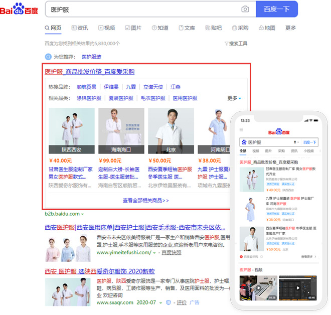 | PC、移动网页、百度APP,多端同步展示商品信息,信息量多达6666条,方便买家搜索触达 |